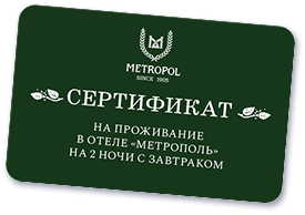 + сертификат на проживание в отеле «МЕТРОПОЛЬ» на 2 ночи